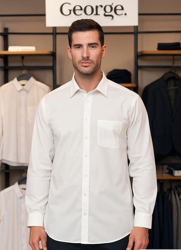Біла сорочка з довгим рукавом від бренду George — це поєднання класичного стилю та практичності. Марка George, створена у Великій Британії, відома якістю своїх речей і комфортом у щоденному носінні. Вона пропонує одяг, який виглядає охайно, добре сидить і служить довго. Ця сорочка виготовлена з приємної до тіла тканини — поєднання поліестеру та бавовни, що забезпечує комфорт і легкий догляд: тканина менше мнеться та швидко сохне. Класична посадка додає свободи рухів і робить модель універсальною — підходить як для ділового образу, так і для повсякденного стилю. Сорочка нова, без ознак носіння. Фактичні виміри: Комір — 49 см Плечі — 58 см Довжина рукава — 66 см Довжина сорочки — 82 см Об’єм грудей — 148 см Об’єм талії — 148 см Дивіться також інші речі в моїх оголошеннях, підписуйтесь і запитуйте — завжди радий допомогти з вибором!