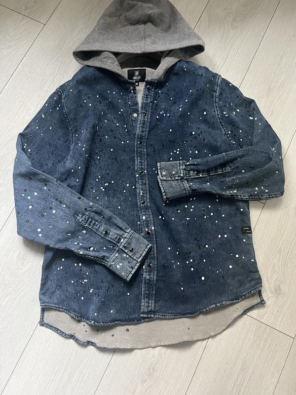 Джинсова сорочка з капюшоном. Coolcat. Нідерланди. Розмір M- L. Плечі- 48см, груди- 57см, довжина- 75см, рукав- 65см. Без нюансів.