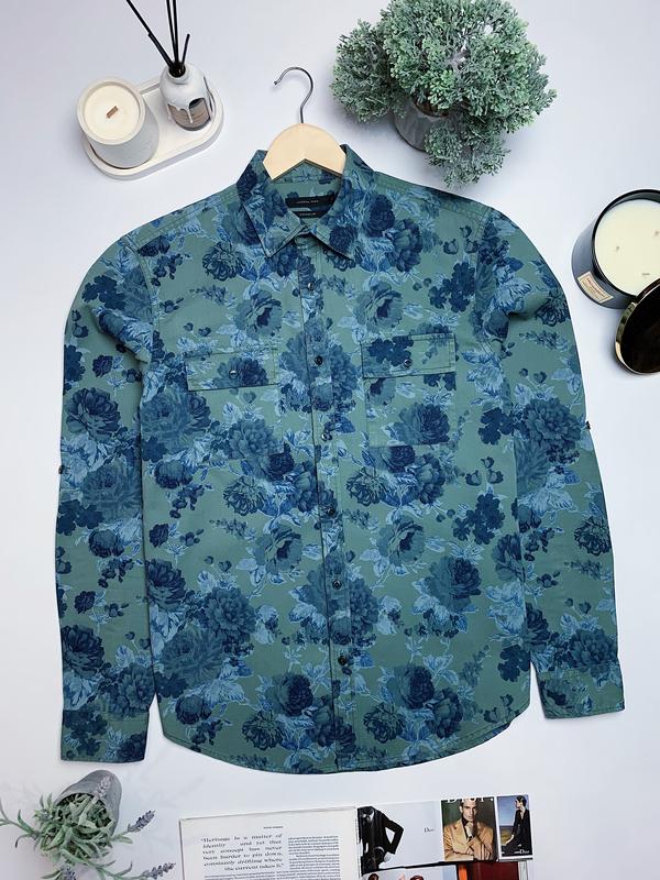 JASPAL ✔️Розмір L (по факту М) Цупка сорочка в красивий квітковий принт. •100% cotton •ідеальний стан ✖️Заміри: •плечі 48 см •груди 55 см •рукав 67 см •довжина 77 см