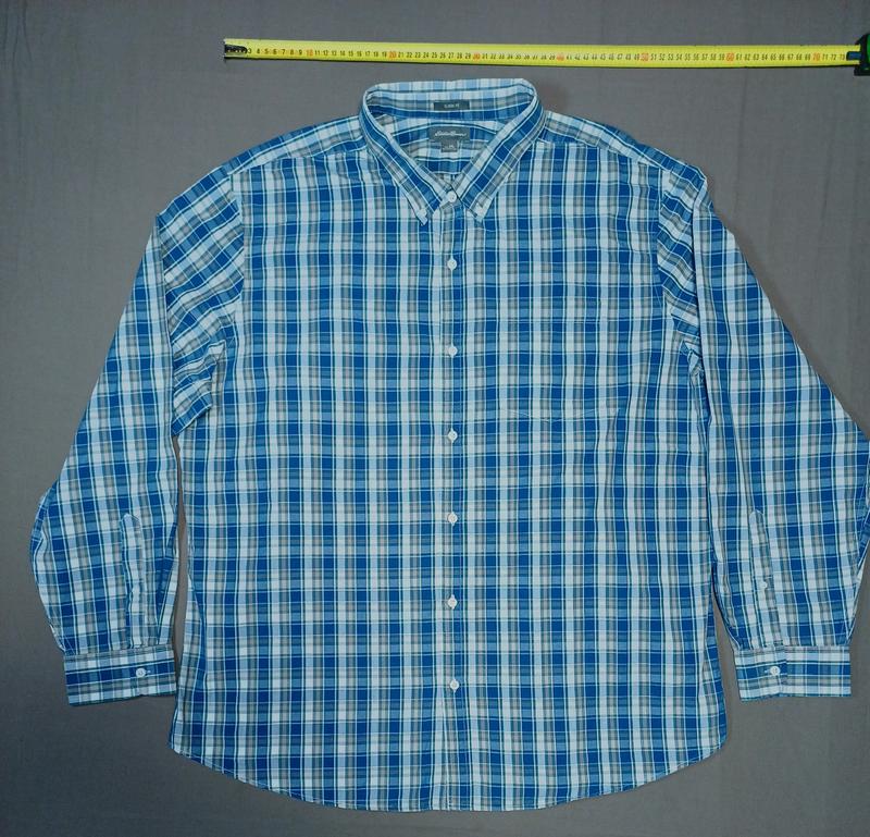 КОМІР 51 СМ EDDIE BAUER SIZE 2XL СИНЬОЗЕЛЕНА КАРТАТА СОРОЧКА 100% COTTON CLASSIC FIT заміри: 1) ПЛЕЧІ 55 СМ 2) ГРУДИ 71 СМ 3) ТАЛІЯ 67 СМ 4) ДОВЖИНА ПО СПИНІ 82 СМ 5) ДОВЖИНА РУКАВА 68 СМ
