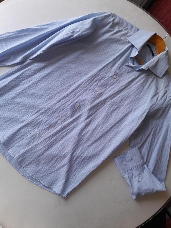 Продам чоловічу сорочку з довгим рукавом Arber. В дуже гарному стані. Світло блакитного кольору у білу крапочку. Тканина 53% бавовна, 47% поліестер. Розмір на бірці 176-96-40