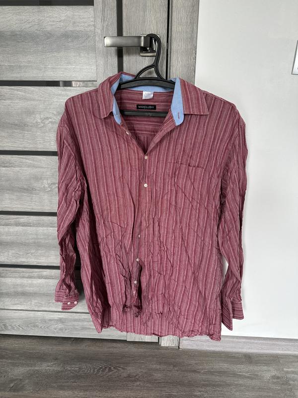 Розмір XL Червона Чоловіча сорочка довгий рукав в смужку Натуральна тканина