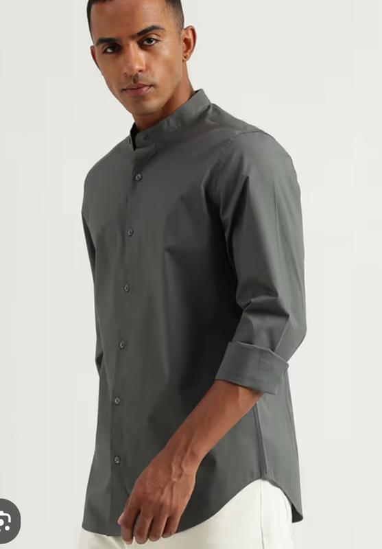 чоловіча сорочка з комірцем стойка від фірми ASOS на український р.46-48, вказано М. Модель приталена та подовжена. Стан - як нова, без нюансів. Колір - сірий, склад 55% бавовна+ 45% поліестр. Довжина 90см Напівоб'єм по грудях 54см Напівоб'єм по низу - 54см Довжина рукава 66см Ширина в плечах - 44см Надішлю УКР/НП/rozetka