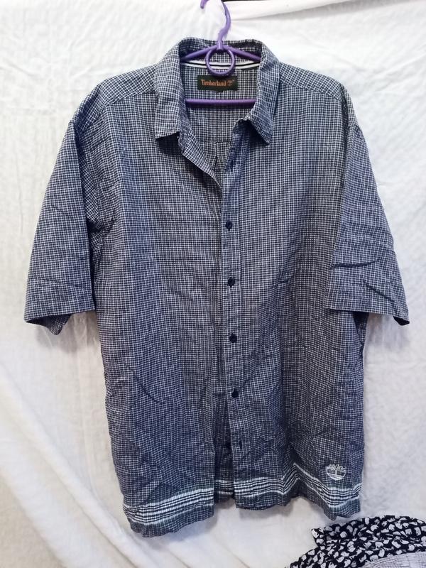Розмір виробника: не зберігся, гадаю, L/XL Тип одягу: сорочка Бренд: Timberland Склад: 100 бавовни, ткана картато. Тканина на дотик шорсткувата, середньої товщини, дуже щільна і нееластична Стан: дуже добрий, сліди носки є хіба на бірці. Під лівою пашкою є 2 невеличкі дірочки. Можна зашити, можна носити і так. Має запах дезинфікуючого засобу. Догляд: прання Обміри виробу: 128 в грудях Обміри, рекомендовані виробником: на XL 114-120 в грудях Довжина виробу по спинці: 80 см SKU: 11222025-006 Будь ласка, уважно читайте опис і обміри. Ціна враховує стан, торгу нема. Річ є вживаною, наполегливо рекомендую випрати чи почистити перед використанням. Обміну і повернення нема. Усі додаткові питання прошу задавати в повідомленнях