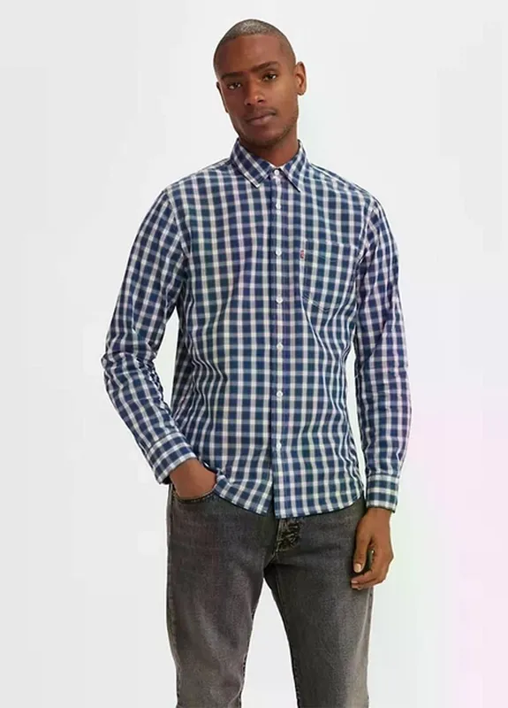 Нова оригінальна чоловіча сорочка від легендарного бренду Levi's. Модель у класичну синьо-білу клітинку, яка ніколи не виходить із моди. Головна особливість: Ця сорочка виготовлена з Supima Cotton — це «світова найкраща бавовна». Вона набагато м'якша за звичайну бавовну, міцніша і краще зберігає колір після прання. Деталі: Бренд: Levi's (оригінал, всі бірки на місці). Матеріал: 100% Supima Cotton — преміальна якість. Колір: Синя клітинка (dark blue/white). Кишеня: На грудях є акуратна кишеня з фірмовим червоним прапорцем Levi's. S Плечі 43,5 см Пог 51 см Рукав 63 см Довжина від плеча 73/70(ззаду довша )