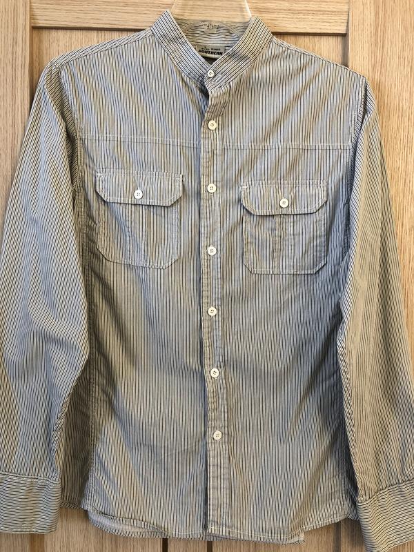 Чоловіча сорочка, біла в сіру смужку. Стан ідеальний. Комір стійка. Довжина рукава від плеча 65см Довжина по спині від стійки 72см ПОГ 56см
