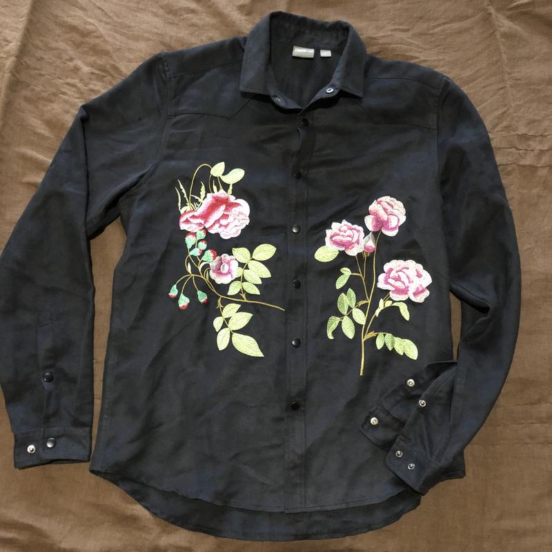 ASOS Красива і яскрава сорочка, матеріал схожий на вельвет, соковиті квіти вишиті по всьому торсу гудзики - кнопки, можна носити розстебнутій поверх футболки як овершот}. Ймовірність того, що йдучи в ній зустрінеш хлопця в подібній - вкрай мала ! Розмір М Груди 54 Плечі 44.5 Рукав Довжина 75 75