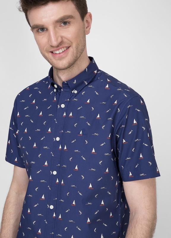 Сорочка з коротким рукавом. Темно - синього кольору. 100% коттон. Прямого силуету. Унікальну гармонію розкоші і стриману елегантність шведського бренду можна описати, як витончений casual. Якість говорить сама за себе. При покупці двох сорочок, третя - в подарунок.