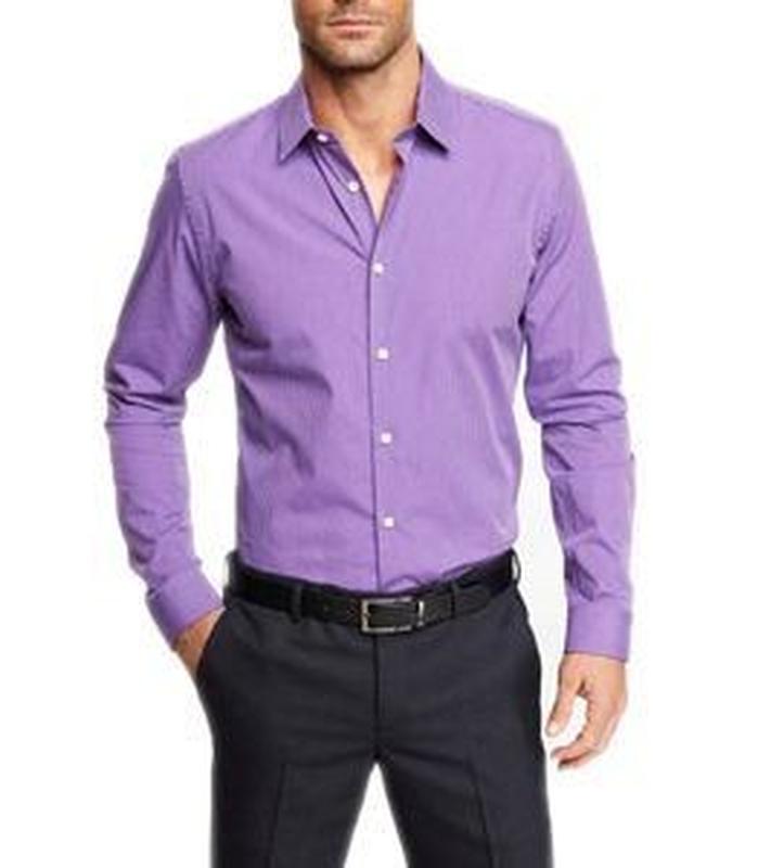 Оригінал Чоловіча сорочка насиченого лавандового кольору на високого стрункого красеня Округлий низ дозволяє і назовні і заправляти Приталеного силуету Розмір L ПОГ 52 Довжина по спинці 80 Довжина рукава по внутрішньому шву 54 Плечі 48 96%бавовна, 4% поліестер