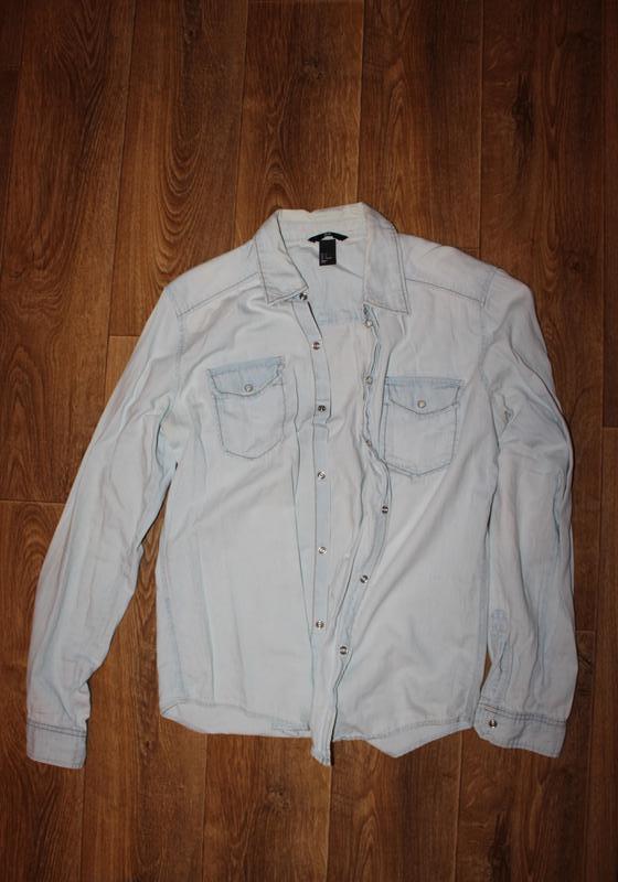 Сорочка H&M. світло-блакитна, контрастні шви, перламутрові кнопки. Виміри на запит