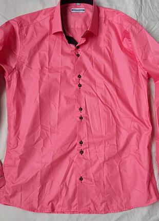 Дуже гарна сорочка кольору чайної троянди,чорна обробка,гудзики.Нова,але без етикетки.Розмір 48-50.Плечі 48 см, ог 54 см, рукав 68 см, длинаи73 см Торг