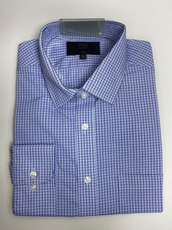 Сорочка Marks & Spencer з довгим рукавом 42 розмір Slim fit - приталеного крою - Довгий рукав - Класичний комір - Одинарні манжети - Фіксовані пластинки в куточках комірця Виміри робила вручну: 42 р. слім - Плечі 48 см, груди 112 см, рукав від центру ворота 92 см Рекомендації по догляду - Машинне прання при 30 º 65% поліестер, 35% бавовна