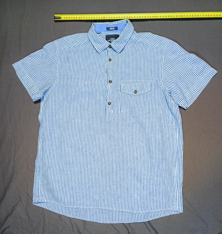 КОМИР 42 СМ LOGG LABEL OF GRADED GOODS H&M EST. 1993 CN175/100A ТЕНІСКА НА 4 ГУДЗИКИ SIZE M замеры А - ПЛЕЧИ 45 см В -ГРУДИ 57 см С - ТАЛІЯ 57 СМ Д -ВЫШКАЮЩИЙ ПО СПИНУ 75 см И - ДОВЖЕННАЯ РУКАВА 22.5 см
