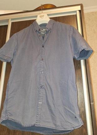 мужская синяя рубашка с коротким рукавом