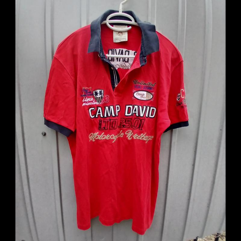 Стан майже нова,слідів ношення не видно,комір варьонка.Заміри:полуобхват грудей-63/64см,плечі-52см,довжина по спині-76см,Camp David,size-XL,100%cotton,Original,made in Turkey.