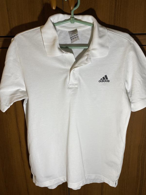 Біла футболка поло Adidas. Стан ідеальний, без жодних дефектів. Розмір S. Матеріал - бавовна. Розміри в см: півобхват плечей - 41, півобхват грудей - 50, довжина - 70.