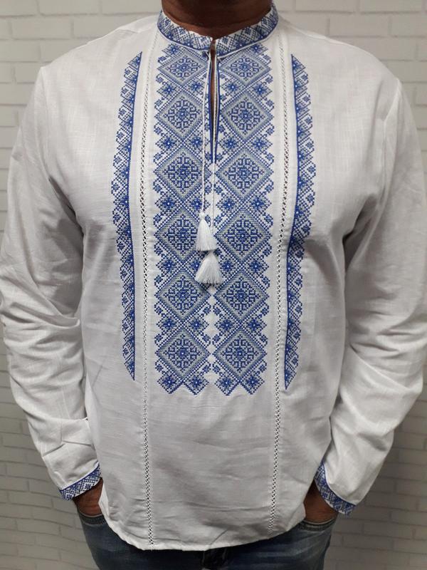 Вышиванка мужская ,машинная вышивка лен "синевир"