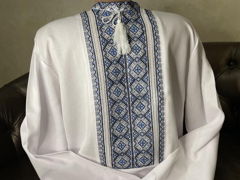 Стильна чоловіча вишиванка на білому полотні ручної роботи. ч1691