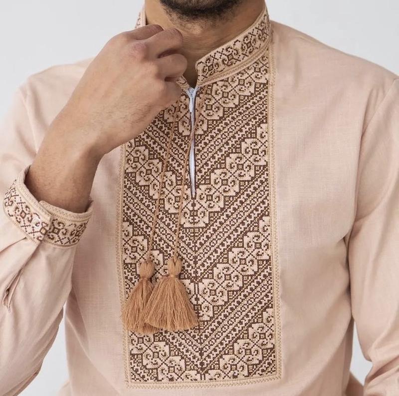 Сучасна сорочка вишиванка чоловіча. Виготовлена на тканині: льон. Оздоблена машиною вишивкою. Модель має практичний комір, фіксується на прихованому замку. Розмірний ряд з S по 6XL
