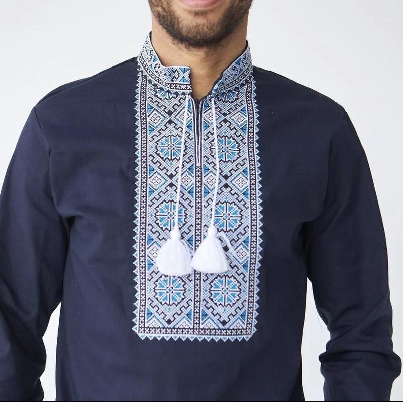 Сучасна сорочка вишиванка чоловіча. Виготовлена на тканині: льон. Оздоблена машиною вишивкою. Модель має практичний комір, фіксується на прихованому замку. Розмірний ряд з S по 6XL