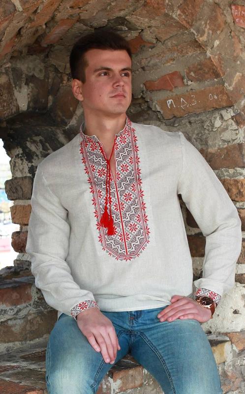 Мужская вышиванка на льне льняная рубашка вышитая натуральная ткань