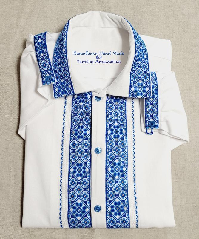 ### Чоловіча вишиванка ручної роботи на домотканому полотні (вишиті вставки) "Лазурова" Синій колір у наших предків як раз і вважався наймогутнішим оберегом, що символізує небо і воду, очищення, позбавлення від хвороби і душевний спокій. Традиційно синій колір прикрашав чоловічі вишиванки, так як вважалося, що саме чоловік часто потрапляє в небезпечні ситуації, і саме йому потрібен захист і оберіг. - ### Вишиванка Handmade для чоловіків - розмір S/M/L/XL; - ### Тканина - домоткане полотно, 100% бавовна; - ### Вишиті вставки та акуратно вшиті в тканину; - ### Вишивка технікою хрестик, акриловими нитками; - ### З довгим рукавом; - ### На гудзиках, з класичним відкидним коміром. Розмірна сітка для визначення потрібного розміру вишиванки (розміри вказані за мірками ЛЮДИНИ*) * Якщо знімаєте мірки з готового виробу, тоді не дивуйтеся, що ширина сорочки є більшою (~<10 см), за вказану у таблиці. Все вірно, адже виріб повинен бути вільним, забезпечувати свободу та комфорт у пересуванні. РІСТ (см) Міжнародний розмір Український розмір Обхват шиї(см) Обхват грудей(см) Обхват талії(см) Довжина рукава (см) 168 XXS 44 37 88 78 61 171 XS 46 38 92 82 62 174 S 48 39 96 86 63 177 M 50 40 100 90 64 180 L 52 41 104 94 65 182 XL 54 42 108 98 66 184 XXL 56 43 112 104 67 184 XXXL 58 44-45 116-120 108-112 67 Не знайшли у даній таблиці потрібного розміру вишиванки? Це не привід залишати наш магазин. ************************** Телефонуйте чи звертайтеся через форму зв'язку на головній сторінці, пошиємо вишиванку під замовлення. В нашому інтернет- магазині ************************** Ви маєте можливість придбати високоякісний етнічний одяг ручної роботи, а також замовити вишиванку ручної роботи під індивідуальне замовлення! ### ###
