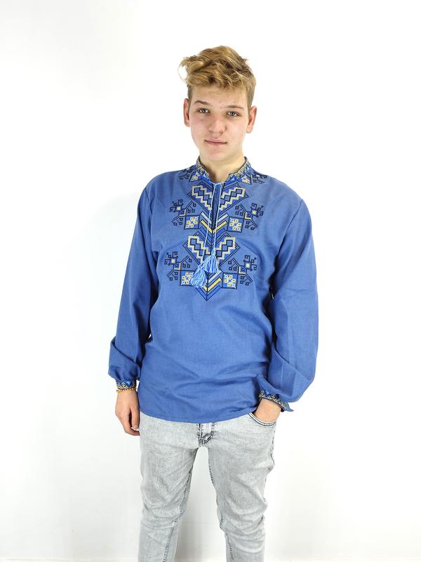 Чоловіча вишиванка синього кольору з орнаментом дерево життя у великих розмірах