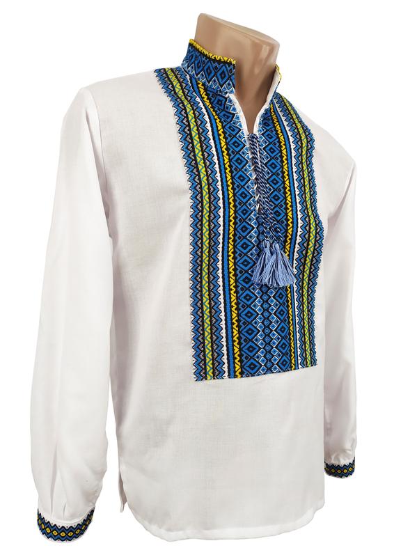 Чоловіча вишиванка білого кольору із тканою нашивкою