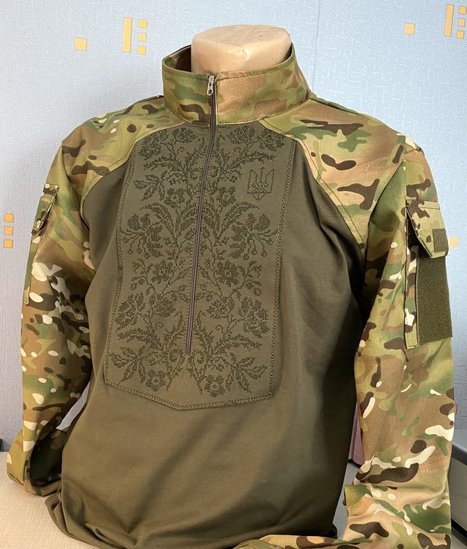 Ошатна святкова вишиванка. Тканина (тіло -- кулір, плечі рукава, комір -- 65 бавовни , 35 поліестру, з пропиткою) На рукавах функціональні кишені з клапанами, на яких є липучка. Розміри для замовлення -- 44,46,48,50,52,54,56,58,60,62. Ціна залежить від розміру.