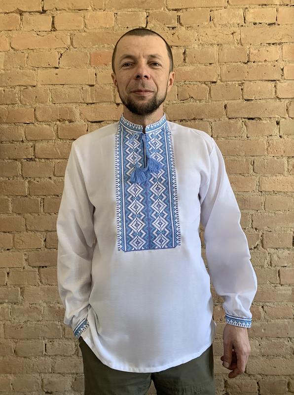Чоловіча сорочка-вишиванка голубий орнамент