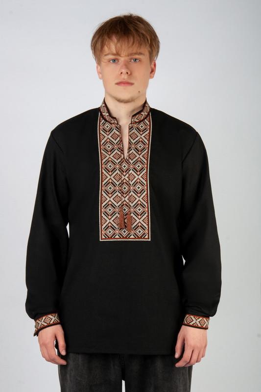 Чоловіча вишита сорочка з довгим рукавом виготовлена з лляного полотна. Лляна тканина відрізняється високою міцністю, чудово вбирає вологу, має гарні властивості повітро- і теплопроникності, проста в догляді та довговічна у використанні. Дана модель прямого крою, має комір-стійку, рукава з манжетами на застібці, комір, манжети та перед сорочки прикрашено вишитим орнаментом, збоку для зручності є невеликі розрізи. Полотно: лляна тканина Склад: 55% льон, 45% віскоза. Вишитий орнамент: машинна вишивка Розміри : 48, 50, 52, 54, 56 ✅Оплата на карту ✅Доставка новою та укр поштою протягом 2 робочих днів ✅Обмін та повернення за попередньою домовленістю
