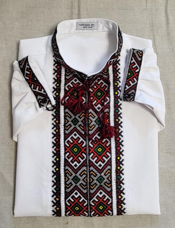 Чоловіча вишиванка ручної роботи на домотканому полотні "Ясниця" (вишиті вставки) Українська вишивана сорочка на домотканому полотні з гуцульським переплетенням оранжевого, зеленого, жовтого та чорного кольорів підійде чоловікам, які полюбляють етностиль. Як кажуть гуцули: "Шо файно то файно":)) - ### Вишиванка Handmade для чоловіків - розмірL; - ### Тканина - домоткане полотно, 100% бавовна; - ### Вишиті вставки та акуратно вшиті в тканину; - ### Вишивка технікою "низь", акриловими нитками; - ### Горловина на замку чи кнопках (з наявних); - ### З довгим рукавом; Розмірна сітка для визначення потрібного розміру вишиванки (розміри вказані за мірками ЛЮДИНИ*) *Якщо знімаєте мірки з готового виробу, тоді не дивуйтеся, що ширина сорочки є більшою (~<10 см), за вказану у таблиці. Все вірно, адже виріб повинен бути вільним, забезпечувати свободу та комфорт у пересуванні. РІСТ (см) Міжнародний розмір Український розмір Обхват шиї(см) Обхват грудей(см) Обхват талії(см) Довжина рукава (см) 168 XXS 44 37 88 78 61 171 XS 46 38 92 82 62 174 S 48 39 96 86 63 177 M 50 40 100 90 64 180 L 52 41 104 94 65 182 XL 54 42 108 98 66 184 XXL 56 43 112 104 67 ### Не знайшли у даній таблиці потрібного розміру вишиванки? Це не привід залишати наш магазин. ************************** Телефонуйте чи звертайтеся через форму зв'язку на головній сторінці, пошиємо вишиванку під замовлення. В нашому інтернет- магазині ************************** Ви маєте можливість придбати високоякісний етнічний одяг ручної роботи, а також замовити вишиванку ручної роботи під індивідуальне замовлення!
