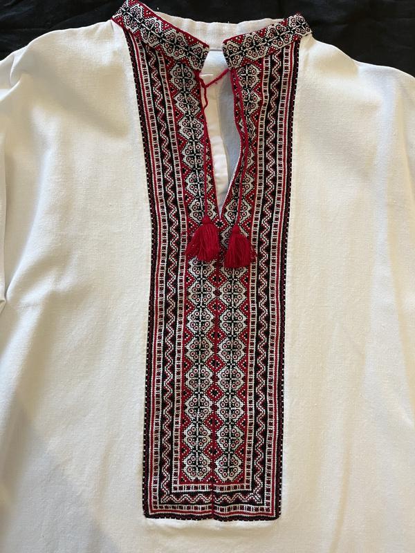 Чоловіча вишиванка ручної роботи. Льон. Довгий рукав. Заміри: ширина по грудях 63 см., ширина по талії 62 см., ширина плечей 51 см., довжина рукава 59,5 см., довжина виробу 74 см.