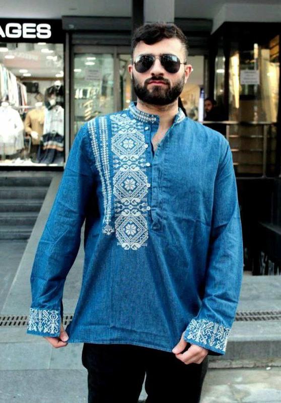 Мужская вышитая рубашка размеры: с.м.л.хл.хл тканина : джинс
