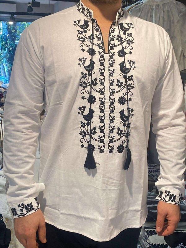 Турецька бавовняна чоловіча вишиванка вишита сорочка з китицями