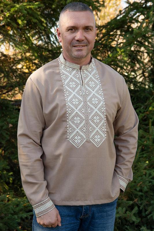 Вышиванка мужская, цвет - бежевый, молочный Материал-Льон размер S M L XL XXL 2XL размер 3XL, 4XL, 5XL, 6XL + 150 грн❗