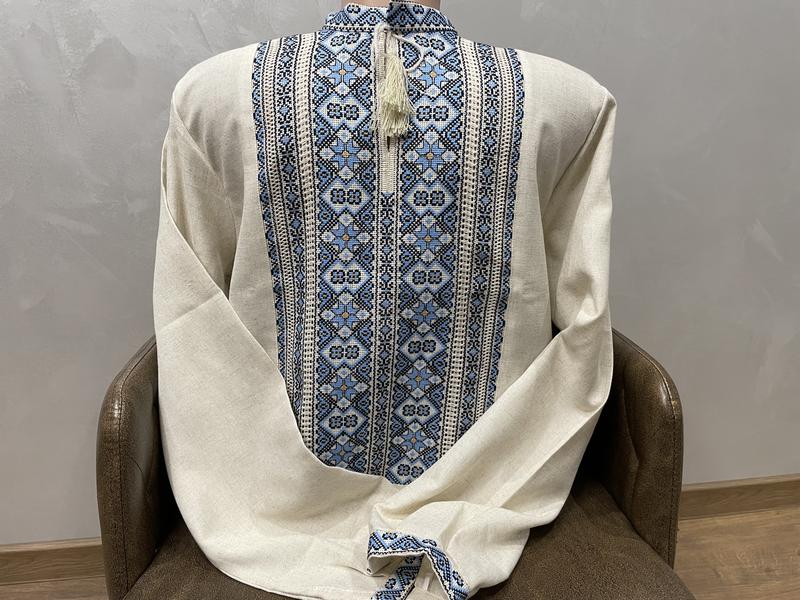 Стильна чоловіча вишиванка на сірому льоні ручної роботи. ч-2075