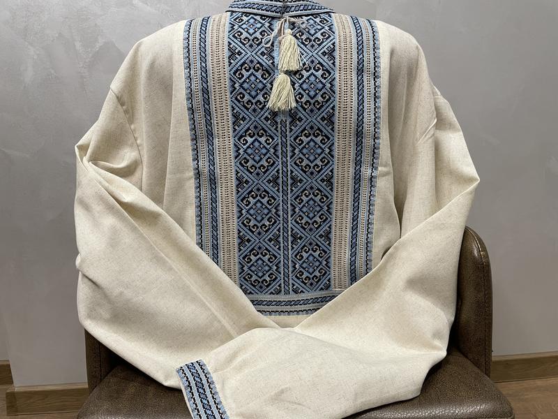 Стильна чоловіча вишиванка на сірому льоні ручної роботи. ч-2078