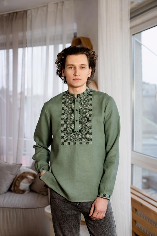 Мужская вышиванка лён хаки масло