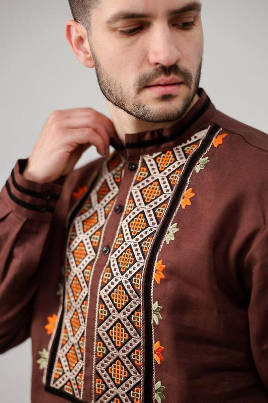 Вышиванка мужская (542) коричневого льна