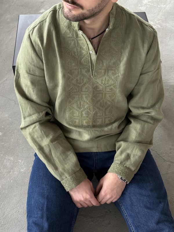 УВАГА! Є в наявності, за відсутності шиємо в найкортші терміни. Відправляємо замовлення протягом 2-3 робочих днів. Про швидші терміни можна домовитись з менеджером індивідуально.. Наша команда також готова виготовити вишиванку саме під ваші індивідуальні розміри, щоб ви відчували себе комфортно та стильно. Вишиванка чоловіча з зеленим орнаментом Тризуб-4 Зелена - завжди в тренді та вічно стильний одяг, який підкреслює українські традиції. Обирайте наші вишиванки для яскравого та національно збереженого образу. Тканина "Льон" - це 70% натуральний матеріал, який видобувається з рослини льону. Він володіє важливими характеристиками: Природність та екологічність: Матеріал виготовляється без хімічних обробок, що робить його екологічно безпечним. Дихаючість і вологовідвід: Тканина пропускає повітря та вологу, що дозволяє шкірі "дихати". Терморегуляція: Льон регулює температуру тіла, забезпечуючи комфорт у різні сезони. Міцність та довговічність: Волокно льону є міцним і довговічним. Естетичний вигляд: Має природний, сироватий вигляд. Ця тканина підходить для виготовлення одягу та текстильних виробів, які відзначаються своєю якістю та природністю.