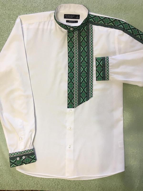 Сорочка вишита стрічками з українським орнаментом. Вишивка обʼємна (не друк) Крій приталений. Застібається на ґудзики. Заміри: Плечі-46 см Пог{пахви}-51 см Талія-48 см Довжина рукава-64 см Довжина-73 см Є багато інших варіантів і розмірів, дивіться в моїх оголошеннях.