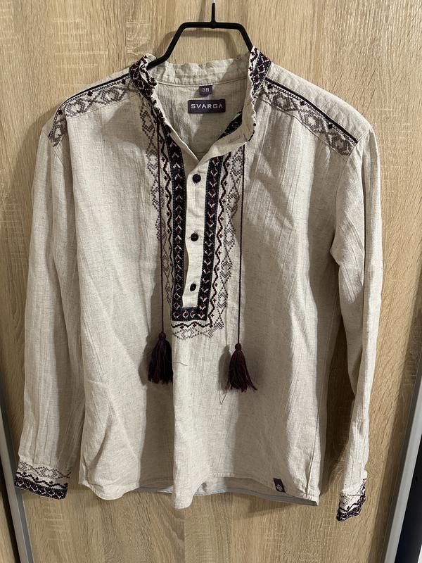 Чоловіча вишита сорочка. Нова, не підійшла за розміром. 100% льон. Об’єм грудей: 100 см Об’єм талії: 87 см Зріст: 182 см Об’єм стегон: 102 см