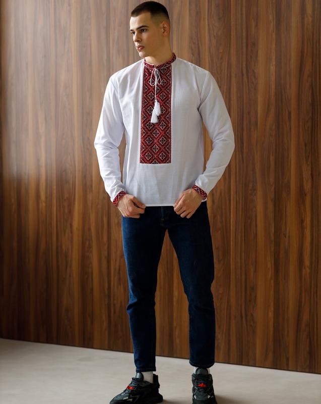 Вишиванка біла з червоною вишивкою чоловіча ручної роботи з