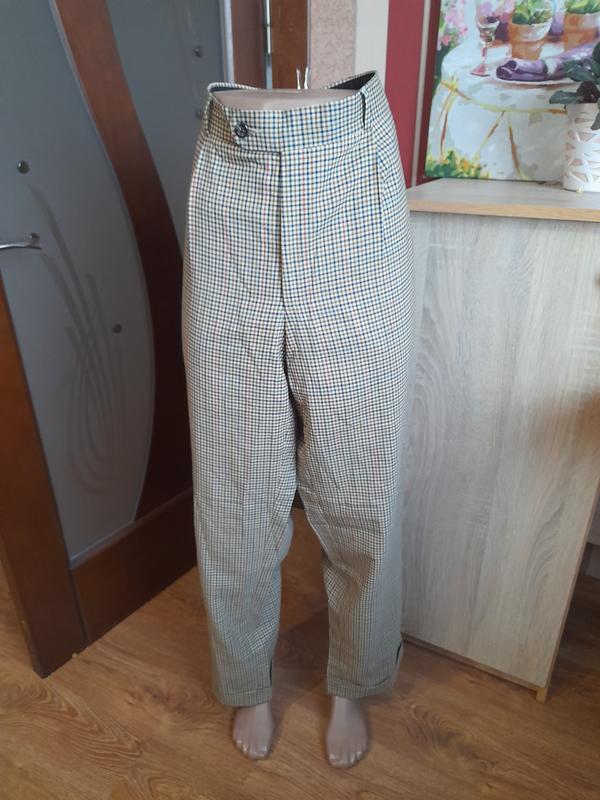 брюки в клетку, снизу подвороты, ОТ 45 см ОБ 57 см длина 102 см посадка спереди 29 см, сзади 39 см
