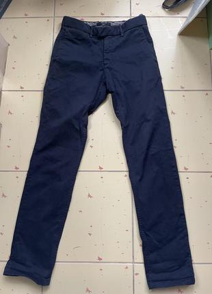 Продам штани в ідеальному стані. Колір темно синій. Розмір 38. Прямі . Тканина щільна і дуже приємна на дотик. 98% бавовна, 2% поліестр.