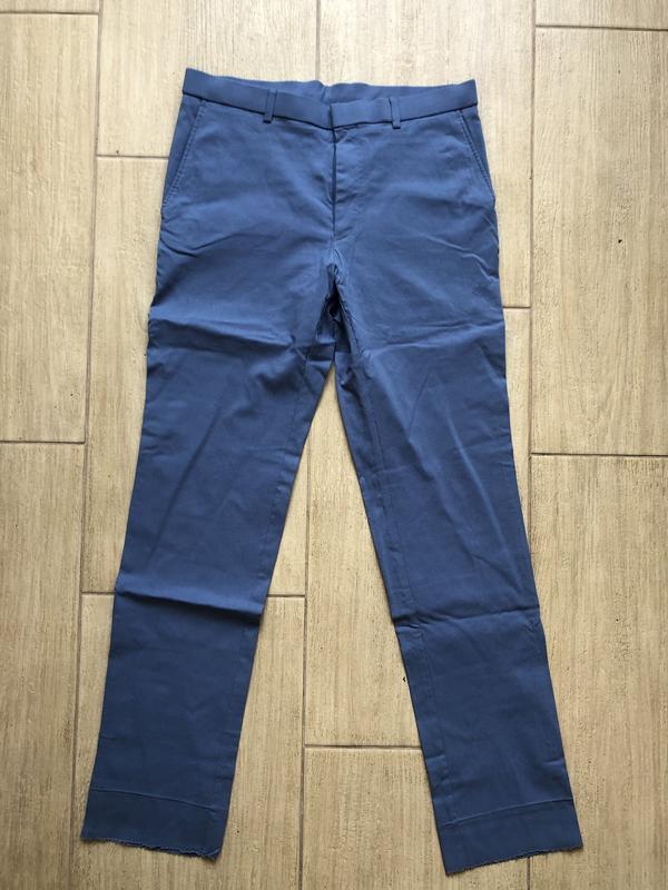 брюки Tommy Hilfiger, розмір 32/32 Заміри: Довжина повна - 107 см Довжина початкова(до заводського загину) - 100 см Пояс - 42 см Висота по матні спереду - 26 см Стан дуже хороший. Дуже гарно тягнуться. Зроблені якісно. Є в двох кольорах: синій і червоний. З нюансів: були розпороті штанини(показано на останньому фото). В будь-якому ательє можна зробити потрібну довжину.