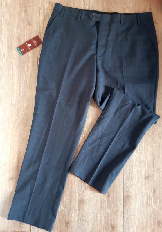 Сині картаті штани шерсть/поліестер.Нові з етикеткою.Тканина не товста.Прямі. Довжина 100 кроковий 74 посадка 27 НО талії 47 НО стегон 56 галіфе 33 ширина по низу 20