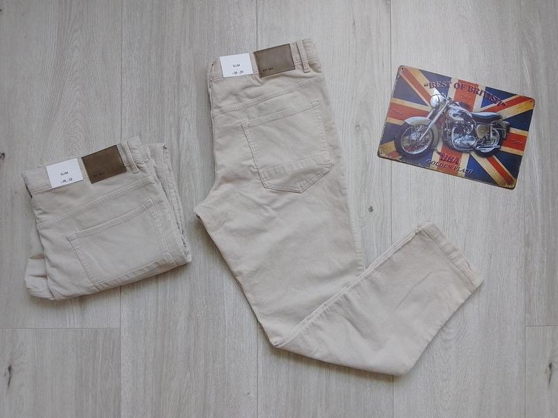 Чоловічі вельветові штани р. 36/30. Модель slim (завужені). Колір молочний. Склад: 98% бавовна, 2% еластан. Розмір 36/30: - Напівобхват пояса - 48 см, тягнеться до 50 см - Напівобхват стегон - 54 см, тягнеться до 59 см - Посадка - 26 см - Посадка зад - 39 см - Крок - 76 см, - Повна довжина - 100 см, - Напівобхват штанини внизу - 18 см. Розмір 38/32: - Напівобхват пояса - 51 см, тягнеться до 54 см - Напівобхват стегон - 57 см, тягнеться до 62 см - Посадка - 26 см - Посадка зад - 41 см - Крок - 80 см, - Повна довжина - 105 см, - Напівобхват штанини внизу - 19 см.