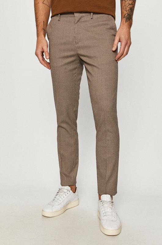 Штани із колекції Scotch & Soda. Модель виготовлена із узорної тканини. - Крій chinosy. - Штанина з кантом. - Прорізні кишені. - Застібається на блискавку і гачок. - Узорна тканина. - Параметри вказані для розмір: 30/32. Склад: 3% Еластан, 63% Поліестер, 34% Віскоза